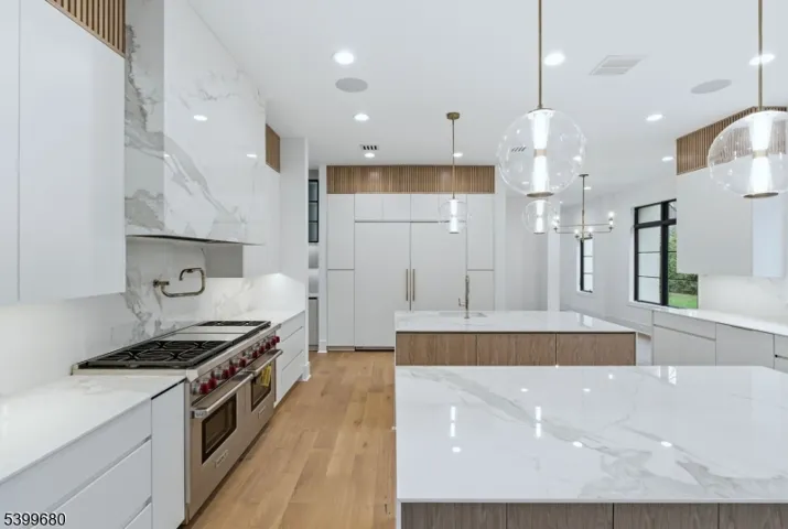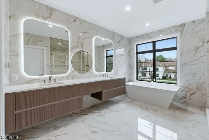 Another stunning custom home by renowned Fermano Builders, perfectly situated on Demarests prestigious east side, offering over 7,200 sq ft of meticulously crafted luxury living on .55 acre. Designed by award-winning FDS Architects, this home features a dramatic two-story foyer w/ a floating glass-enclosed staircase leading into a breathtaking double-height family room w/ a striking stone-and-wood clad fireplace. A sophisticated glass wine display elegantly connects to the formal dining room. The gourmet kitchen is a chefs dream, boasting top-of-the-line stainless steel appliances, double islands, a walk-in pantry, a sun-drenched breakfast room, and a stylish wet bar just off the kitchen, perfect for entertaining. The first floor is enhanced by 10-foot ceilings and includes a refined office/library, a sumptuous ensuite bedroom/cabana, and two beautifully appointed powder rooms. Upstairs, the oversized primary suite features a serene sitting area, two expansive walk-in closets, and a spa-like bath w/ soaking tub and oversized shower, and complemented by three additional ensuite bedrooms and a convenient laundry room. The fully finished lower level provides a complete entertainment haven w/ a rec room, deluxe media room, gym, versatile ensuite bedroom, game room, and sleek wet bar. Additional highlights include a three-car garage, a covered patio, and room for a pool. This rare residence blends modern luxury, sophisticated design, and an unrivaled Demarest location.