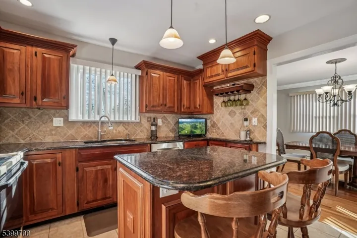 Lyons Train Station 1.1 mi, Starbucks 0.8 mi, Pleasant Valley Park 0.9 mi, Stop and Shop 1.0 mi, Lyons Mall 0.7 mi, Ridge High School 2.4 mi. Central Basking Ridge location with easy access to Routes 287 and 78 and about 40 minutes to Newark Airport. This Cape-style home offers a warm, flexible layout with thoughtful updates and convenient access to everyday needs. The living room features hardwood floors and a white brick wood-burning fireplace with a custom mantle, opening to an office or first-floor bedroom with French doors and easy access to the full bath and kitchen. The cherry kitchen includes granite counters, newer stainless appliances, a space-saving recessed refrigerator, a corner pantry closet, and a door to the backyard. Upstairs are two spacious bedrooms with ceiling fans, floored eave storage, and a renovated full bath with a stall shower. The finished basement adds a large family room, extra storage, laundry, and outside access. Hot water baseboard heat, central air, newer windows and gas heat add comfort and convenience. A covered porch connects to the one-car attached garage, and the paved driveway offers room to turn around, eliminating the need to back out onto Mt Airy Rd. Close to NYC trains and major highways, this home blends privacy with easy everyday access.