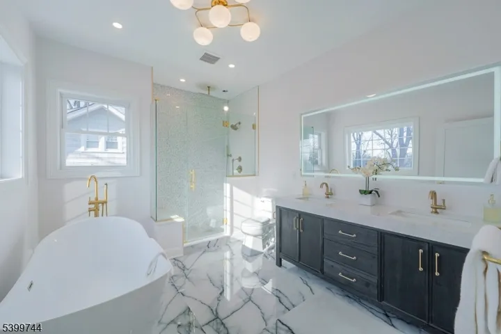 Experience the best of modern living in this exceptional nearly 5,000 sq ft. newly built home, stylishly designed for comfort & modern living. Impeccable design & high-quality craftsmanship by Lefko Brothers, combine in this thoughtfully planned custom Colonial featuring 9′ ceilings, oak flooring, curated lighting, detailed millwork & loads of windows offering incredible natural light. Step through the front-to-back center Foyer & into open & sun-drenched rooms that invite gathering & relaxation. The elegant Living & Dining Rms flow into the dream Kitchen, anchored by a spacious center island & top-of-the-line appliances created for the fussiest of chefs! Adjacent casual Dining area & Family Rm comfortably welcomes all w/ its vaulted ceiling, gas Fireplace & sliding doors to the rear patio & fully fenced yard, the perfect outdoor entertaining venue. 1st Fl. en-suite BR, customized Mudroom w/ access to 2-car Garage & Powder Rm completes this level. Upstairs, the Primary suite becomes your personal sanctuary, featuring a serene Dressing Rm, spa-like Bath, & generous WIC. Two additional BRs, hall Bath & convenient Laundry Rm round out the 2nd Fl. The third Fl, perfect for guests, or a quiet workspace is composed of 2 more BRs, full Bath, WIC & Attic storage. The fully finished Lower Level features an extra-large Recreation Rm w/ built in wet bar, BR w/ full Bath, Gym & Office. Ideally situated only 0.7 m to downtown Maplewood Village & 2 blocks to jitney service to NYC train.