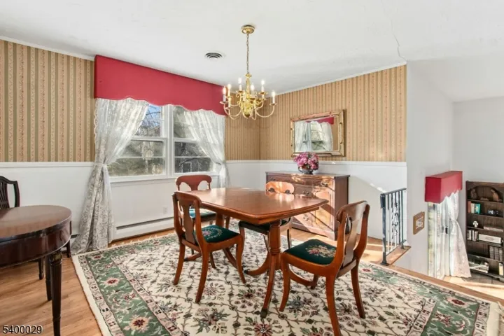 This spacious 4-bed, 3-bath split-level sits on a sunny .42-acre corner lot and offers flexible living for today’s needs, including excellent MOTHER/DAUGHTER potential. Step inside to a dramatic great room with a cathedral ceiling and hardwood floors, opening directly to a private back terrace; an ideal setting for relaxing or entertaining. Just above, an elegant mezzanine-level formal dining room with hw floors overlooks the great room, creating a bright, open connection between the main living spaces. The eat-in kitchen sits adjacent and features a convenient secondary staircase leading down to the ground-level family room.The second floor featurs three bedrooms with hw floors and generous closet space, and two full baths, including a spacious primary en-suite. The ground level adds a fourth bedroom, full bath, family room, and a mud/laundry room with direct access to the garage and side entrance. A finished basement offers even more recreation and storage options. Outdoor highlights include an inviting front porch, rear terrace, and a large sun-filled side yard all minutes from the scenic Watchung Reservation. Discover exceptional living in highly desirable Mountainside, celebrated for its top-rated schools, including Deerfield, a Blue Ribbon School, and multiple commuting options just 22 miles from Manhattan.