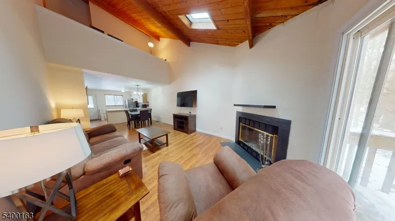 This 3-story 1/2 DUPLEX is located in a quiet section of Holiday Lake abutting woods. It features approximately 1196 sf of finished living space with vaulted ceilings + full walk-out basement, Deck overlooking the woods, new roof (2 years), HVAC (central A/C and forced Hot Air), and fireplace for all-weather comfort. FIRST FLOOR: Open floorplan featuring Kitchen; Dining area; Living Room with cathedral ceiling, fireplace, and sliders to deck; a Large 1st floor primary Bedroom (19’x11′) with sliders to the deck; full-Bathroom; and Laundry. SECOND FLOOR: Bedroom (11’x10′), Loft/Office (14’x9′) plus a full Bathroom. BASEMENT: 35’x22′ of dry open space (awaiting your family room and/or additional bedrooms/office) with high ceiling and walk-out sliders to the yard. Appliances include refrigerator, gas stove/oven, microwave, dishwasher, and washer & dryer. AMENITIES include Lake Access, Pool, Beach, Playground, Basketball Court, Tennis Courts, Baseball Field, Dog Park, etc. In addition, integrated into the community is High Point Country Club’s beautiful 18-hole public golf course, restaurant, patio and lounge. For outdoor enthusiasts, take advantage of the nearby trails, High Point Monument State Park, hiking the Appalachian Trails, rafting the Delaware River, or skiing nearby resorts. Commuters have nearby access to routes 84, 23, 206, 6. This is a great place to live! Don’t wait! This property is priced to sell and being sold STRICTLY AS IS (INCL. all the furniture, if wanted).