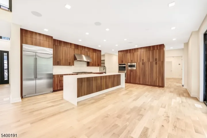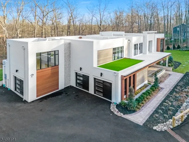 This striking two-story contemporary home greets you with a dramatic foyer featuring rich wood paneling, a sculptural lighting fixture, and a custom staircase with glass railings that set the tone for the elegant design throughout. The spacious Great Room, centered around a custom fireplace, flows seamlessly into a sleek, state-of-the-art kitchen with brand-new stainless-steel appliances. Large sliding doors lead to a generous patio with a second fireplace, perfect for refined indoor-outdoor entertainment. The main level also includes a stylish powder room, a versatile bonus room, a well-appointed mudroom, and access to both a two-car garage and a separate one-car garage for added convenience. Upstairs, the bedrooms include the impressive Primary Suite with a walk-in closet and a spa-like en suite bath. Oversized windows and soaring ceilings throughout flood each room with natural light, enhancing the home’s open, airy feel. Set back from the street on a large lot, the home is accessed by a long, elegant driveway and exudes a refined yet welcoming presence. The owner has put in green-grade sod to complete the exterior. 10 Big Ramapo offers everything you need: poured concrete foundation, steel siding, butcher block stairs, custom glass ceilings, decorative wall accents, and top-tier plantings. This is contemporary living with a distinctly elevated perspective. Come see all this perfection for yourself!