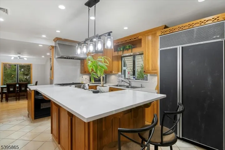 Custom Colonial Cape perfectly situated on a spacious 1.2 acre lot that blends timeless charm with modern luxury. Culinary dream kitchen designed with a 6 burner stove, exhaust hood, double sinks , plus an additional oven. New quartz countertops & subway tile backsplash. Breakfast bar with prep sink and a built in Miele coffee station that crafts custom coffees and teas to your liking. A separate dining area provides a casual gathering space, while the formal dining room offers elegance with built-ins and a wet bar for entertaining. Family room offer a masonry brick fireplace and built in pizza oven. Hardwood flooring throughout. master bedroom features a private bath with jetted tub and stand alone shower. With a convenient second floor laundry room. The finished basement offers a private entrance, full bath, rec. room, and office. A multi season Sun Room offers a place to relax or step outside and enjoy your backyard oasis with built in pool and patio. The 3-4 car detached gas heated garage offers a great space for vehicles or hobbies.