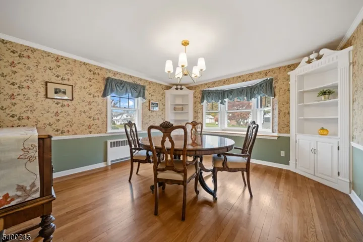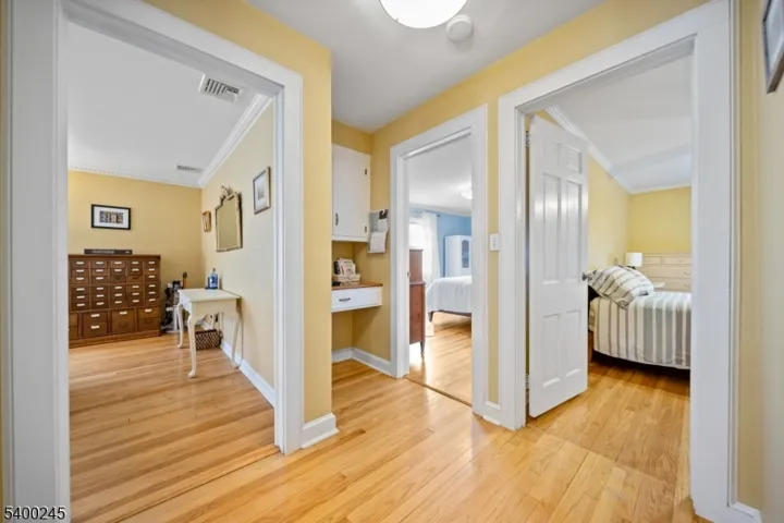 A beautifully maintained Cape Cod blending timeless craftsmanship with thoughtful updates. Step through the foyer into a warm living room anchored by a wood-burning fireplace, framed by built-in bookshelves and detailed crown molding. The formal dining room features a charming bay window and built-in china cabinets, creating an effortless flow for both everyday meals and entertaining. At the heart of the home, the kitchen offers granite countertops, a center island, stainless-steel appliances, and a convenient side-door entry. Down the hall are two spacious bedrooms, a full bath, and a built-in desk area designed to keep life organized. The primary bedroom extends to a bright three-season sun porch an ideal spot to start or end the day. Upstairs, two additional bedrooms offer generous storage, including a walk-in closet and access to a large attic room. The lower level feels like its own retreat, featuring a family room with a second fireplace, a bonus room, a wine tasting room, a full bath, and walk-out access to a covered patio and the two-car garage. Recent updates add comfort and peace of mind, including a new roof (2021) and two-zone central air (2024). Moments from downtown Midland Park, schools, parks, the library, and transit, this home delivers a perfect balance of charm, space, and convenience your next chapter begins here.