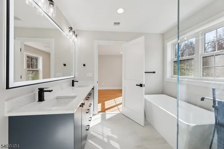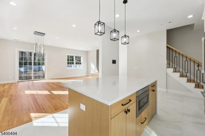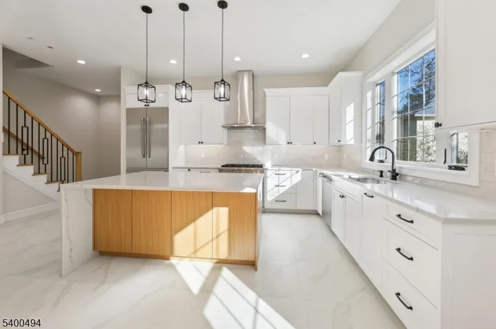 Brand new 3-bedroom, 2 full & 2 half bath (left side) townhouse/duplex style condo with built in garage and NO Maintenance fees! This quality-built home measures approx. 3,000 sq. ft. (plus an additional 750 sq. ft. finished basement) its only a 9 min walk to the train station where you can be in NYC in under an hour! 1st floor has 10′ ceilings, Living room, dining room, combined with an open concept kitchen with custom cabinets, quartz tops with tiled backsplash, Thermador stainless steel appliances, which include stove, built-in microwave, dishwasher, and refrigerator. The family room has a wine cooler, an electric fireplace and sliders to patio overlooking the 250′ deep fenced in yard. 2nd floor features 3 bedrooms, laundry closet with washer & dryer & 2 full baths. King sized Master bedroom with walk-in closets and private bathroom with soaking tub & shower stall. Finished basement with recreation room, half bath and utility room. Built in 1-car garage with a door opener & connection for future car charger, the driveway can accommodate a few cars. 2 gas forced air heating & air conditioning systems, gas hot water heater, security camera & monitoring system, hardwood floors. Lot size for the unit is 37.5 x 250 (.21 acres). Lawn sprinkler sprinkler will be completed weather permitting. Includes a 10-year new home warranty! No maintenance fee- requires each side to pay for dwelling insurance policy once a year. Steps away from YMCA, library & restaurants!