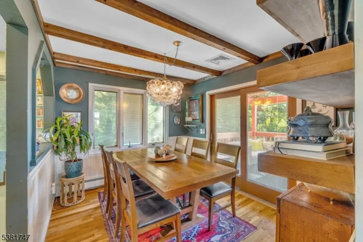 Beautifully maintained bi-level home on 1.28 acres. Home offers 3 bedrooms and 1.5 baths with warmth, character, and modern updates throughout. Main level features cathedral ceiling in living room, a corner stone gas fireplace w/ wood mantle, creating a cozy centerpiece for the living space. The kitchen features KraftMaid cabinets, stainless steel appliances, electric wall oven, granite countertops, stone backsplash, built-in shelving, and plenty of natural light. The formal dining room boasts hardwood floors, a beamed ceiling, floating shelves, and sliding doors that open to multi-tiered decks, perfect for entertaining or enjoying quiet evenings outdoors. All bedrooms showcase hardwood floors and cedar-lined closets. The ground floor offers even more living space with a freestanding wood stove, vinyl flooring, walk-out access to the back patio, and convenient entry to the garage. Additional highlights include central air, hot water baseboard heat, a ROTH oil tank, a roof less than 2 years old, Pella windows with built in blinds on first floor, and a transfer switch for a generator. Outdoors, enjoy an 8′ x 16′ plunge pool, an 8′ x 13′ greenhouse, a 12′ x 16′ shed with a concrete foundation and electric, plus an additional 8′ x 7′ shed with electric. For added flexibility, the property also offers a natural gas hook-up if the new owner chooses to convert. Furniture is removed now due to a buyer not performing-BOM MULTIPLE OFFERS RECEIVED ALL OFFERS DUE BY 12 PM 12/11/2025