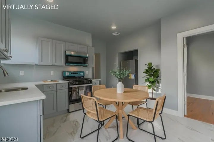 Welcome to this bright and beautifully updated 3-bedroom, 2-bathroom apartment in the Upper Clinton Hill section of Newark?s South Ward. This top-floor home features a stylish renovation and a layout designed for comfort, convenience, and modern everyday living. Natural light fills the spacious living room, highlighting the hardwood floors and recessed lighting. The updated kitchen offers Shaker-style cabinetry, quartz-style countertops, stainless steel appliances, and ample workspace for cooking and entertaining. The primary bedroom includes its own private en-suite bathroom with modern fixtures, creating a comfortable and private retreat. Two additional bedrooms provide generous closet space and flexible layout options to suit a variety of needs. The second full bathroom has been completely renovated. Additional highlights include updated flooring, clean finishes throughout, and generous storage. An exclusive laundry hookup with dedicated storage space is available for this unit in the basement. Conveniently located near Clinton Avenue, the property offers easy access to parks, shopping, major commuter routes, including I-78 and the Garden State Parkway, Newark Liberty International Airport, and NJ Transit for straightforward commuting to NYC. Beth Israel Hospital is just minutes away.