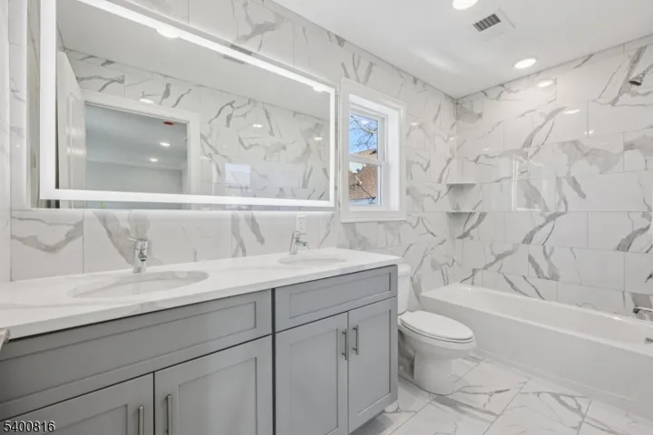 Spectacular Brand-New 2 Family Residence. A Rare Opportunity for NYC Commuters & Owner-Occupants! Experience the best of modern living in this stunning new construction, thoughtfully designed for comfort, flexibility & long-term value. Each sun-filled unit features a sleek open layout ideal for everyday living & entertaining, enhanced by an abundance of windows, recessed lighting & gleaming flrs.The chic kitchens boast quartz countertops, modern cabinetry, s/s appl’s and pantry. Style meets function. Each unit offers 3 spacious B/R’s & 2 baths (3 baths in 1st fl unit), including a luxurious primary suite w/private en-suite bath & walk-in closet. Enjoy in-unit laundry, C/A & contemporary finishes throughout. The finished walk-out lower level provides flexible extended living ideal w/fam room, home office, guest suite or gym & full bath. Step outside to a private fenced-in backyard oasis, ideal for grilling, relaxing & warm summer evenings.1 car garage + 2-car D/W-possible 3rd add’l -buyer to verify. Exceptional value:10-Yr Builder Warranty + Potential 5-Yr Tax Abatement (sub to Buyer applying). Prime location walk to E.O. Train Station (30 mins to NYC), near shops, dining, parks & highways. The street & surrounding area showcase multiple newer & newly built homes, creating an inviting streetscape & strong sense of reinvestment. Live comfortably in one unit while enjoying the flexibility of the second-this is the lifestyle opportunity you’ve been waiting for!