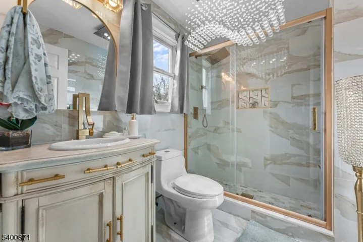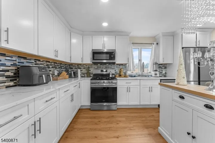 Beautifully renovated 3-bedroom, 3-full-bath home in desirable Bergen County featuring a spacious first floor with a welcoming living room with fireplace, a bedroom, updated kitchen, dining room, and full bath. The second floor offers two additional bedrooms and another full bath, while the fully finished basement includes a convenient kitchenette and a third full bath perfect for guests or extended living space. Enjoy a spacious 4-car driveway, a huge backyard ideal for entertaining, and fully paid-off solar panels providing energy savings and efficiency. Conveniently located close to major highways, schools, parks, and shopping, this move-in ready home offers modern finishes, comfort, and an unbeatable location.