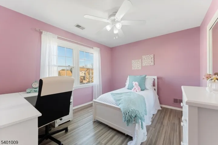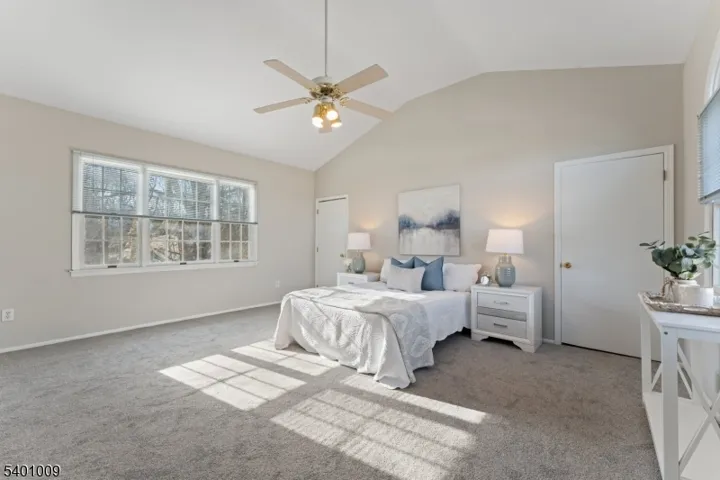 Welcome home to this beautiful, north-east facing, 5-bedroom, 2.1-bath home located in the highly sought-after Woodfield Estates neighborhood. Sun-filled and freshly-painted with an abundance of windows offering natural light throughout.The family room highlights a wood burning stone fireplace and hardwood flooring opening to an expanded eat-in kitchen featuring granite counters, stainless steel appliances, extensive custom cabinetry, a large center island and slider doors leading to a 5 year new deck ideal for outdoor dining and entertaining. The living room is generous in size showcasing a scenic picture window. A convenient laundry and powder room complete the main level. Upstairs, the impressive primary suite offers vaulted ceilings, two large closets, new carpeting and en suite bath with jacuzzi tub and stall shower. Four additional bedrooms are well-sized and showcase luxury vinyl flooring. Outside, enjoy a fully fenced yard with a garden area and a wooded backdrop that provides added privacy. The roof is just 2 years old and includes owned Tesla solar panels which provides significant savings on electric costs. Additional amenities include a 2-car garage and Tesla charger. Don’t miss this opportunity to own a spacious, well-maintained home in a prime location close to top-rated schools and walking distance to library, parks and dining.