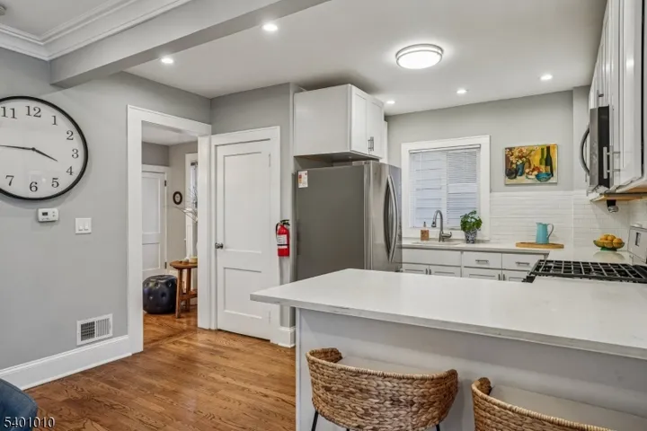Welcome to this charming 3-bedroom, 2.5 bath Colonial nestled in Maplewood’s hottest neighborhood. Updated and move-in ready! Enter via the welcoming front porch, perfect for relaxing with a coffee or a cocktail. The first floor features hardwood floors, great flow, and lots of light. Entry foyer leads to spacious living room which flows to the formal dining room. Eat-in-kitchen offers quartz counters, newer stainless steel appliances, and large breakfast bar. Flexible office / mud room space off of dining room offers more space for organization, relaxation, or work. From there, walk out to the private, fenced-in backyard — the perfect spot to relax, play, and dine. A powder room completes the first floor. Upstairs, there are three good-sized bedrooms and a large, updated full bath. Walk up to the third floor, currently used as an oversized storage area but brimming with potential for finishing. Just bring your imagination! Downstairs, the finished basement offers high ceilings and includes a large recreation room, laundry area, updated full bath, and storage. Additional features include detached 1-car garage and central air / heat. Close to all that Lightning Brook, Hilton, and Springfield Avenue have to offer including shopping, restaurants, parks, Hilton Library, and the fabulous Maplewood Porchfest. Easy access to major highways as well as the jitney to NYC trains. Don’t miss it!