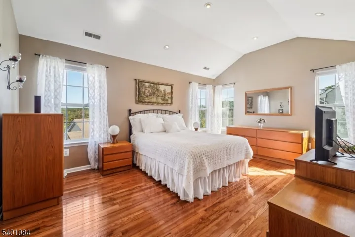 This 3-bedroom, 2.5-bath colonial lives like a 4-bedroom thanks to its fully finished above-ground basement, with potential to easily add a 4th bedroom. Welcome to Woodfield Estates, where community comes alive! Picture afternoons by the sparkling pool and evenings where neighbors become friends on the sports courts and ball field. This sun-drenched 2000-built Ashwood model wraps you in modern comfort with soaring ceilings and light-filled open spaces perfect for gathering. The heart of the home is a magazine-worthy kitchen with center island that would make any design enthusiast or cooking enthusiast swoon. It flows seamlessly to your private deck where coffee tastes better and summer evenings linger longer with amazing views of the rolling hills in the distance. Rich hardwood floors shine throughout the main level, leading to a serene primary suite featuring a tray ceiling and spa-inspired updated bathroom retreat and two generous walk-in closets. Mt. Olive’s high rated Morris County schools serve the community, while your two-car garage, natural gas heat, and central air provide effortless living. The bright above-ground basement expands your possibilities for an additional bedroom, fitness room, home office, or cozy entertainment space. This move-in ready home in sought-after Mt. Olive blends suburban tranquility with easy highway access for wherever life takes you. Shopping and dining await minutes away, yet home feels like your own peaceful escape.