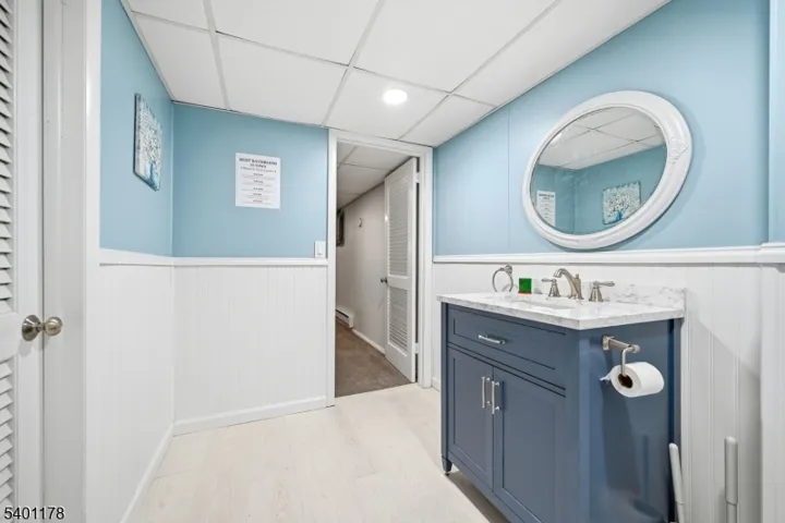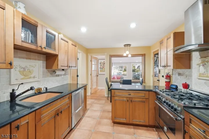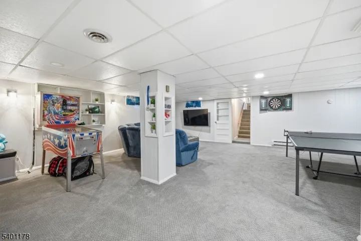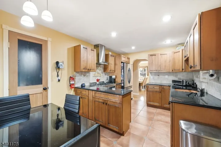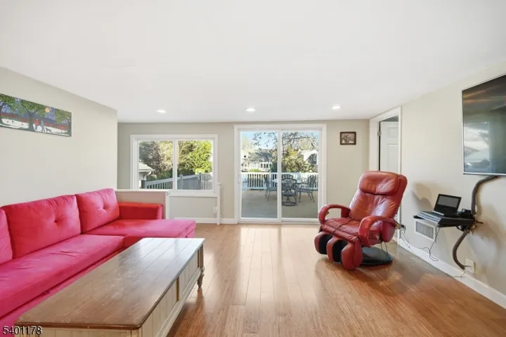 This is a beautifully maintained ranch-style home offering comfort, convenience, and exceptional indoor and outdoor living. Step through the foyer with a closet, and into the spacious living and dining rooms with hardwood floors that flow throughout. The updated kitchen features granite countertops, SS appliances, and a pantry for storage. An inviting family room sits just off the kitchen and boasts sliding doors that open to a large Trex deck. Down the hall, you’ll find additional storage closets and well-proportioned bedrooms, including a serene primary suite with a private full bath (handicap accessible) & nearby laundry. A second full bath completes the main level. Step outside to your private backyard oasis, featuring a heated, in-ground Roman-shaped saltwater pool and a lighted cabana, ideal for summer gatherings and quiet evening retreats. The finished basement expands your living space with a recreation room featuring built-in benches, a convenient kitchenette, ample storage and a powder room. Additional peace of mind comes with a 5-year-old HVAC system. Enjoy a walk-up attic for additional storage as well as a one-car detached garage. Located in sought-after Glen Rock, this home provides access to a vibrant community known for its excellent school system, town pool, and the convenience of two train lines to NYC, making commuting effortless. A rare blend of comfort, style, and location, this home is ready to welcome its next owner