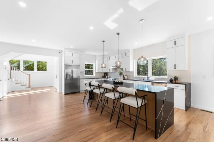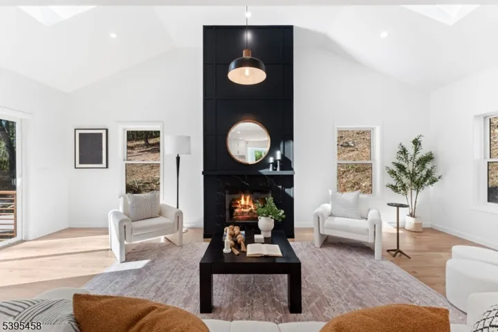 Welcome to this stunning, newly constructed single-family home in the heart of Blairstown. Thoughtfully built on an existing foundation, Step into a striking two-story entrance foyer featuring a quarter-turn staircase accented by a modern multi-light glass globe chandelier. The first floor boasts an expansive open concept with a formal living room featuring two skylights, a fireplace, and sliding glass doors that lead to the front patio. The dining area includes a custom bar nook with a sink and wine cooler, ideal for entertaining. The show-stopping chef’s kitchen is equipped with a massive center island, brand-new stainless steel appliances, and a built-in microwave tucked neatly into the island for added convenience. Additional first-floor features include a private office space and a modern half bath. The 2nd floor offers four generously sized bedrooms. The primary suite is a true retreat, featuring top-tier walk-in closets and a luxurious full bathroom. Three additional bedrooms offer ample space and storage, complemented by a second full bathroom. A well-appointed laundry room with sink and cabinetry is conveniently located on the same level. An attic for extra storage space. Additional Features Include Large windows throughout for natural light, Dual-zone central heating and air conditioning, a Brand-new septic system, and private driveways. Located minutes from Blair Academy, local farms, shopping, dining, and major commuter routes. Don’t miss out!