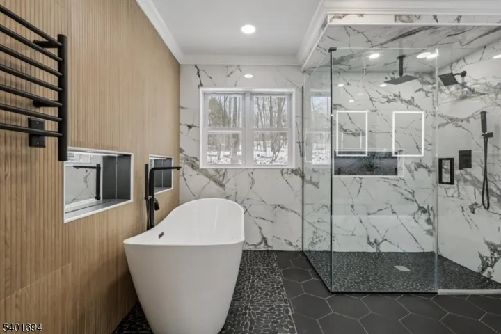 Welcome to 23 Meadow Lane, Sparta, NJ 07871, a stunning 5-bedroom, 3.5-bath luxury home where modern elegance meets peaceful seclusion, set on 1.86 private acres.This beautifully designed residence features a chef’s kitchen with Thermador appliances, quartz countertops and backsplash, sink disposal, and sleek European-style doors. White Oak floors, LED lighting, and high-end finishes throughout create a warm yet sophisticated atmosphere ideal for both everyday living and entertaining.The home offers exceptional comfort and efficiency with foam insulation throughout, 2-zone furnace and A/C HVAC, a Navien 100,000 BTU tankless water heater, full water filtration system, and a new well pump system. Enjoy added convenience with a WiFi-operated garage lift, security cameras, soffit lighting, brand-new silver Andersen windows, and all-new Kella 2 steel doors.The basement offers a spacious recreation area with luxury vinyl flooring, perfect for entertaining or relaxing. Spa-inspired bathrooms include towel warmers, a stand-alone soaking tub, and custom shower niches, while bedrooms are enhanced with custom closet systems.A rare blend of luxury, technology, and privacy 23 Meadow Lane is a true Sparta retreat.