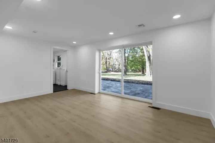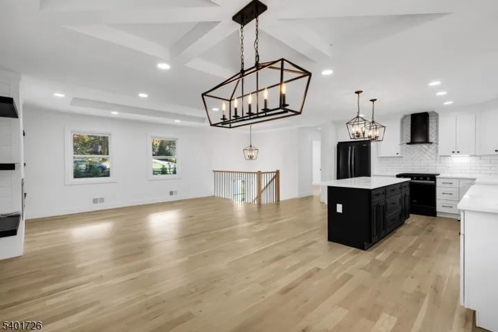 Discover luxury and tranquility in this beautifully renovated 4-bedroom home nestled on a sprawling 1.29-acre lot. Professional landscaping and a welcoming front entry invite you into a bright, open-concept floor plan. The fully remodeled gourmet kitchen boasts quartz countertops, tile backsplash, new appliances, large center island with seating, abundant cabinetry, and ample prep space. The kitchen flows seamlessly into the dining room with custom beamed ceiling and the spacious living room with an electric fireplace flanked by built-in shelving. The primary suite offers a tray ceiling, custom decorative accent wall, and a renovated en-suite bathroom with a spa-like shower, while two additional bedrooms and a second fully renovated full bathroom complete the main level. Downstairs, an enormous rec room awaits your personal touch, with a slider walkout to the backyard patio, plus a flexible fourth bedroom that can double as an office. Finishing this level is a full bathroom, laundry room, multiple storage closets, and direct access to the oversized 2-car garage. Outside offers a private escape with wooded views and a patio perfect for gatherings. Other features include a new roof, new siding, new hardwood floors, and new HVAC. This home combines thoughtful renovations, high-end finishes and versatile spaces and is close to shopping, parks, restaurants, and transportation in a top NJ school district. Come see for yourself and truly appreciate what this property has to offer!