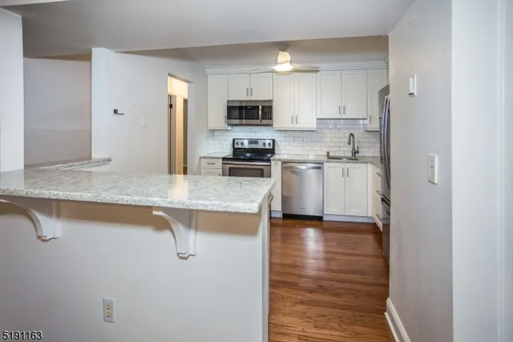 Do not miss the opportunity to live so very close to Morristown Center yet have secluded privacy facing one of the oldest national parks in the US. Walk out on the patio and enjoy the wooded hill behind this condo complex. Recently renovated kitchen baths and floors. Brand new in unit washer dryer just installed. One floor living at its best with no stairs upon entry of the secured lobby. Take the elevator to the 2nd floor and enjoy this 2 bedroom 2 full bath (one in Primary bedroom) condo. Great open concept flow between the living room, dining room and Kitchen makes it great for entertaining. Enjoy the shopping, dining, performing arts center, and mid town direct train to Penn Station and then retreat to your own private oasis. Building has a gym for residents use on lobby level. Parking is 1 assigned space and 1 unassigned space first come first served. A maximum of two cars per unit is part of the by laws.