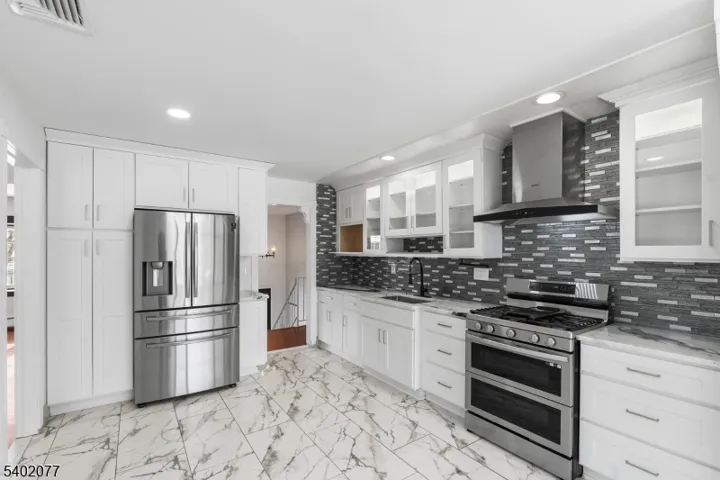 Expansive bi-level home offering over 2900 sq ft. Ideal for flexible living options in desirable Pequannock Township. Both kitchens and all 3.5 baths have been recently renovated.. Spacious living and dining areas. Main level features eat-in kitchen opening to a four season room with cathedral ceiling, three bedrooms including a primary suite with double closets and a full bath, plus an updated main bath with double vanity, skylight, and jetted tub. Ground level offers a kitchenette with granite counters, full bath, a half bath, bedroom with double closets and a private entrance. Also a large main living area and a bonus room. Quiet neighborhood setting.
