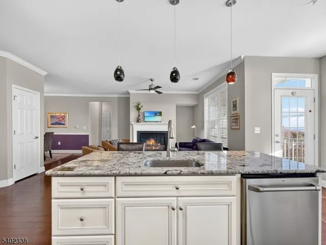 Experience elegant one-floor living in this highly sought-after Iris II model with NYC skyline views, ideally situated on the first floor of a prestigious gated 55+ community. This beautifully designed 2-bedroom, 2-full-bath residence offers a perfect blend of comfort, convenience, and resort-style living. The open and flexible floor plan is ideal for both everyday living and entertaining, with the living room, dining room, and kitchen flowing seamlessly together. The living room features a cozy gas fireplace, creating a warm and inviting atmosphere.The gourmet kitchen is appointed with white cabinetry, granite countertops, stainless steel appliances, double wall ovens, a gas cooktop, and a center island with seating. A convenient outside entrance leads to a covered porch, perfect for relaxing outdoors and enjoying the breathtaking views. The spacious primary bedroom offers generous closet space and a well-appointed en-suite bath with double vanity, soaking tub, and stall shower. A second bedroom and full bath provide comfort for guests, while a bonus den offers flexible space for a home office, gym, or storage. Additional highlights include a two-car attached garage and bonus storage room. Community amenities include a state-of-the-art clubhouse also with NYC skyline views, indoor and outdoor pools, tennis, pickleball, bocce courts, putting greens, sauna, jacuzzi, and fully equipped fitness center. Luxury, low-maintenance living at its finest all on one level.