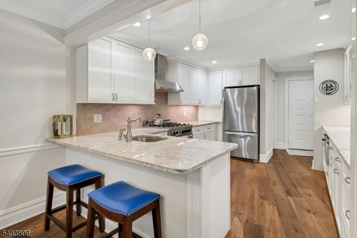 NOT TO BE MISSED SOUGHT-AFTER SUTTON WOODS TOWNHOME! This impeccably updated 2-3 bedroom, 2-bath home has been fully renovated in 2016, 2022, and offers exceptional style and comfort throughout. The stunning white shaker kitchen features Salinas granite countertops, Bertazzoni oven and range, a drawer microwave, breakfast bar, and elegant under-cabinet lighting. Beautiful wide-plank hardwood floors flow throughout the main living areas, complemented by two beautiful renovated bathrooms, solid interior doors, oversized base and crown molding, new windows, and a new A/C system (2024). Enjoy cozy evenings by the gorgeous gas fireplace. The rare OVERSIZED, newly carpeted lower level offers a spacious recreation room and a POTENTIAL THIRD BEDROOM or home office, complete with egress windows and closet space. Amenities include tennis, pickleball and outdoor pool. Ideally located just minutes from both Chatham and Summit train stations and their vibrant downtowns.