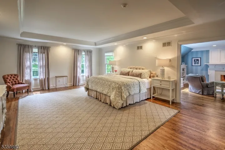 Privately nestled beyond a gated entry on one of Bernardsville Mountain’s most coveted streets, this distinguished Bucks County-style Colonial offers timeless architecture and refined, updated interiors. Encompassing over 6,500 square feet plus a finished walk-out lower level, the home is both expansive and inviting.A gracious marble-floored foyer sets the tone for richly detailed living spaces where soaring ceilings, four fireplaces, and custom millwork evoke classic elegance. Recently refreshed with newly finished hardwood floors, designer lighting, and thoughtful updates, the home feels curated and current.Large windows frame views of 10 beautiful acres, drawing in light and connecting interior spaces to the pool, spa, and manicured grounds. The layout includes a vaulted family room, paneled library, butler’s pantry, and spacious kitchen anchored by a 15-ft island ideal for everyday gatherings. The luxurious primary suite offers dual marble baths and a serene sitting room.With five bedrooms, multiple entertaining areas, and resort-like outdoor amenities, this is a rare opportunity to own a legacy home in one of New Jersey’s most prestigious enclaves.