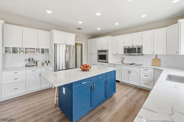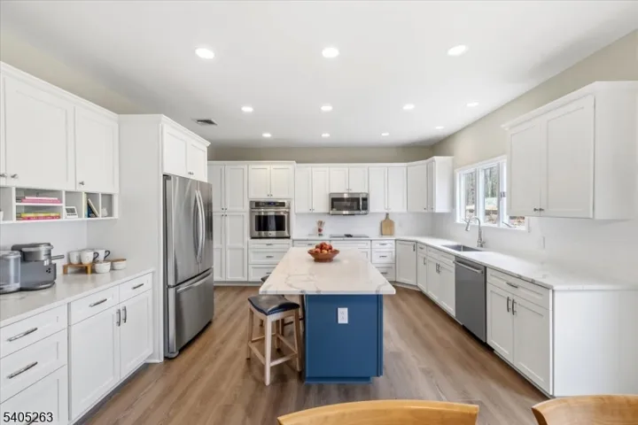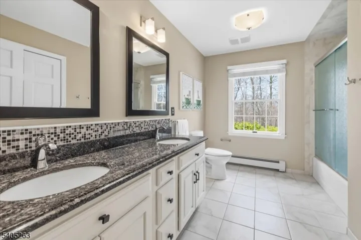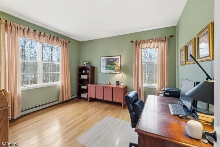 Welcome to this spacious and elegant 4+ bedroom, 3.5 bath colonial set on beautiful park-like grounds, conveniently located near town, schools, and commuter routes. The main level features a formal living room and dining room, a sun-filled oversized family room with a wood-burning fireplace, and a versatile office/bedroom/den with a fully renovated modern bath. The remodeled kitchen offers quartz countertops, updated appliances, an oversized center island, a separate bar area, and a spacious eating area overlooking the private two-tier backyard patio with fire pit. The second level includes an oversized primary suite and an en-suite bath. Down the hall is an updated bathroom, 3 bedrooms, plus a possible 4th bedroom and a bonus/recreation room. Recent updates include a new driveway, updated front sidewalk, and newer central air units. Additional features include an irrigation system, oversized high-bay three-car garage with generator hookup, first-floor laundry/mudroom, central vacuum, back staircase to the second level, and a walk-out basement. If you are looking for space, flexibility, thoughtful updates, and a convenient location – Welcome Home!