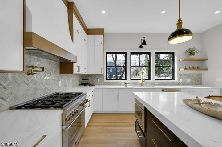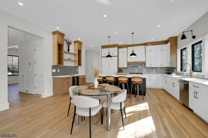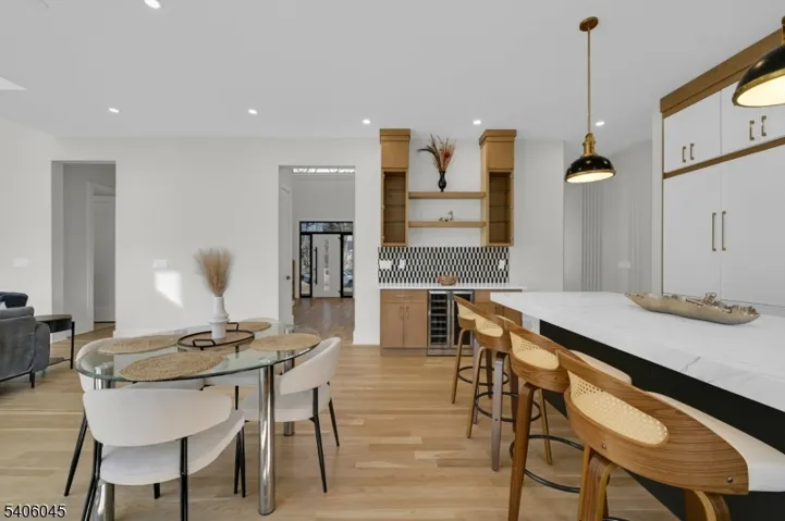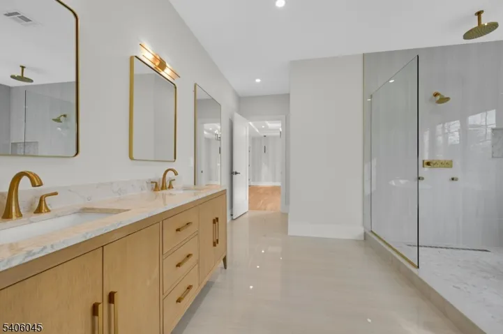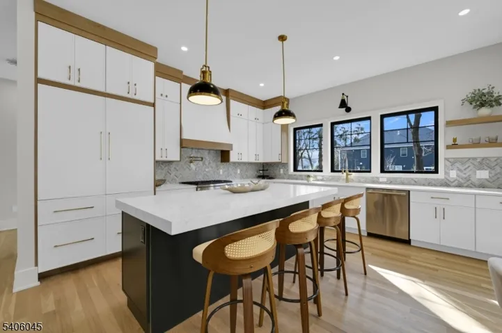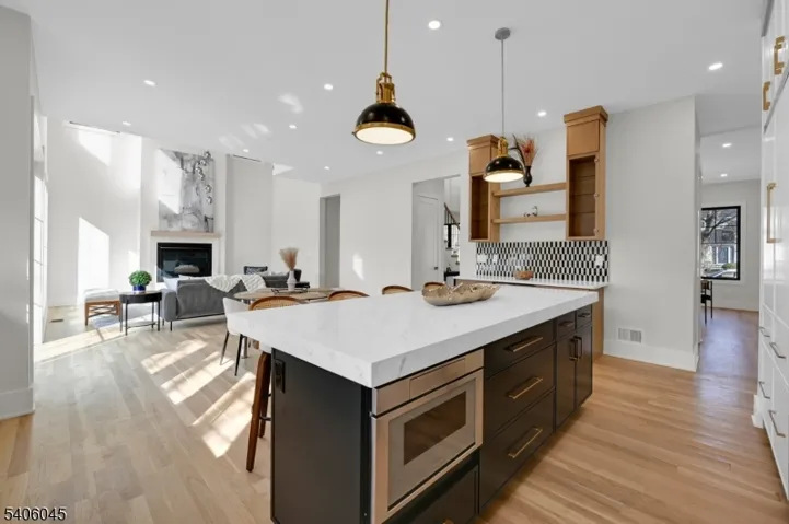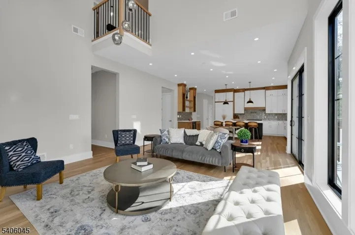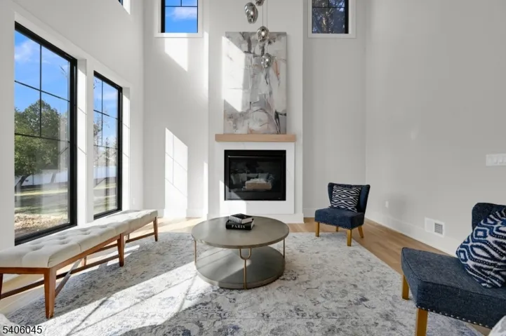 Welcome to this luxurious new-construction 6-BR, 6.5-bath Center Hall Colonial set on a level 0.38-acre lot in one of Florham Park’s most sought-after neighborhoods. A custom luxury-grade statement front door introduces the exceptional craftsmanship throughout. The grand 2-story foyer is flanked by formal living and dining rooms.The sun-filled double-height family room with floor-to-ceiling windows is anchored by a gas fireplace and flows seamlessly into the chef’s kitchen featuring premium panel-ready appliances, a large quartz center island, quartz backsplash, walk-in pantry, bar area, and breakfast area. Arch glass doors open to a paved patio and expansive backyard, ideal for indoor-outdoor living. The main level includes a private en-suite bedroom with walk-in closet, ideal for guests, a powder room with Carrara marble vanity, dedicated home office, mudroom, and direct access to the two-car garage. The second level offers 4 en-suite bedrooms, including a luxurious primary suite with dual walk-in closets and spa-inspired bath, plus a convenient laundry room. The fully finished lower level adds a recreation room, media lounge, bedroom, and full bath.Enhanced by custom millwork, designer lighting, refined architectural details, and exceptional curb appeal, this home is ideally located near shopping, dining, commuter routes, library, recreation facilities, and top-rated schools. Low taxes and a 10-Year Builder Warranty complete this offering.
