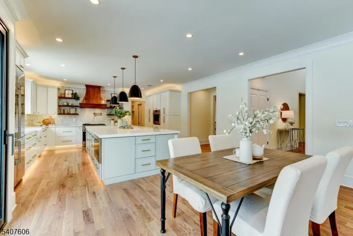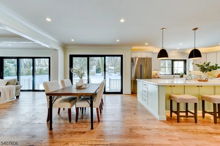 Spectacular construction in the highly desirable Dogwood section of Scotch Plains offering 5342 sq ft above grade and approx 7300 sq ft including the finished basement. This home features 9′ ceilings on the first and second floors and the basement too, hardwood flooring throughout, formal living and dining rooms, and 12×12 foyer. The gourmet kitchen with an oversized island seating 5+, built-in microwave, premium appliances, gas range with lift-up touchscreen controls, pot filler, and a hidden walk-in pantry with direct access from the garage. Refrigerator includes self-filling purified water pitcher & ice maker. First floor includes private office, separate bedroom with full bath, powder room, family room with gas fireplace and Beamed ceilings, and oversized high-security sliding doors opening nearly two-thirds to the backyard, filling the home with natural sun light. Mudroom off garage with coat station &storage. Second floor offers 5 generous bedrooms. Luxurious primary suite features cathedral ceilings, walk-in closet with custom built-ins and center island, and spa bath with heated floors, soaking tub, double sinks,& large walk-in shower w/bench. Second floor laundry. Finished basement with 9′ ceilings includes rec room with kitchenette and wine refrigerator, gym, play/learning area, full bath, and bedroom with egress window. Walk-up unfinished attic offers future expansion. Hardi plank exterior, covered front porch. –