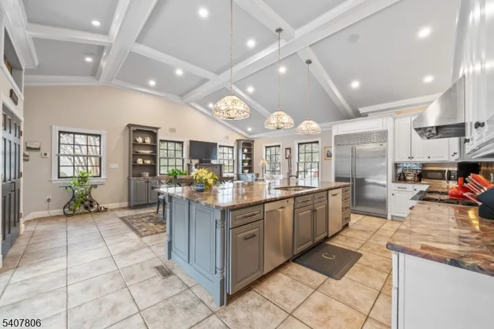 Stately custom built residence in the heart of Nutley offering over 5,400 square feet of beautifully crafted living spaces on every floor. Detailed windows fill the home, highlighting ribbon-edged hardwood floors that showcase timeless craftsmanship.Designed for both grand entertaining and everyday comfort, the soaring two-story family room features a bar, while the elegant living room and dining room set the stage for memorable gatherings. First floor office makes working from home effortless, and a versatile bonus room serves perfectly as flex space. Chef’s kitchen is the true heart of the home, anchored by a massive center island and high-end finishes. On the second floor, primary suite offers a sitting room overlooking the family room, walk-in closet and spa-like bath. The third floor holds three bedrooms and half bath.Fully finished basement delivers the ultimate experience with a pub-style full bar with complementary exposed brick & stone. Add a sauna and good luck getting friends to leave! Enjoy resort style living with a built-in pool, hot tub, fire pit, outdoor kitchen, paver patios, and mature landscaping. Property ideally located near downtown, ON3 campus, NYC transit, and Nutley’s renowned parks. Come see this one-of-a-kind home!