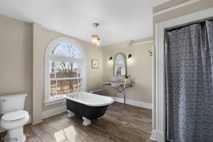 Stunning, beautifully renovated circa 1888 Queen Anne Victorian-replete with welcoming 1,670 sq. ft. wraparound front porch, asymmetrical exterior designs employing stone & patterned shingles, steeply pitched rooflines, round & polygon towers, original stained glass windows, & volume ceilings, plus original custom millworker, period doors & hardware, & hardwood flooring throughout–captures the charm & elegance of a bygone era but with all of today/s modern features & conveniences. This majestic home encompasses 4,742 sq. ft. of commodious living space on 3 flowing floors and boasts 14 rooms including 6 airy bedrooms, 3 renovated full baths, updated powder room, with two lovely primary bedroom suite options on separate floors- each with delightful sitting areas and en suite full baths: tasteful living room, open floor plan family room features a sliding glass door to the inviting bluestone patio: renovated designer kitchen boast granite countertops w stainless steel farm sink, custom cabinetry, premium stainless steel appliances including a Thermador six burner gas range with center griddle & 2 ovens, elegant dining measures 27×14. The second & third floors offer high ceilings 6 bedrooms, 3 full baths, laundry room, home office and exercise room. Fully fenced 4.2 acre pancake flat property w restored 2-story barn, newer 6 bedroom septic system, public water, gas heat from newer boiler, brand new 2-zone central air conditioning (2nd & 3rd floors), plus Verizon Fios.