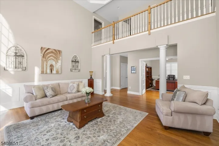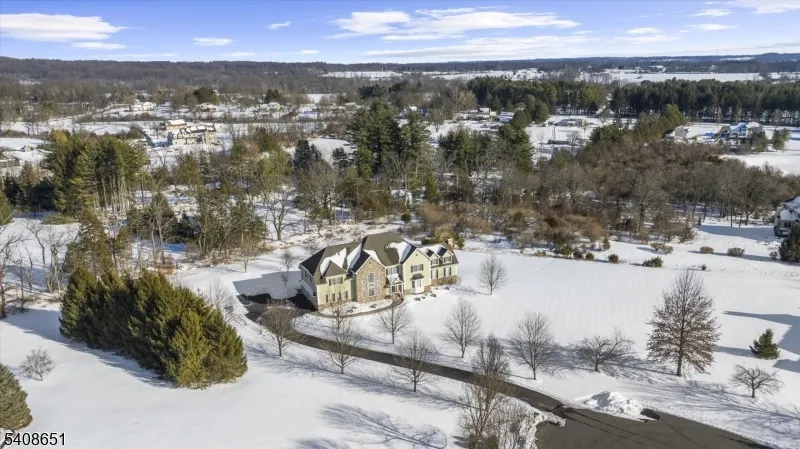 Begin your day in the vaulted primary suite sanctuary, where sunlight pours through the windows as you step into your private sitting room. Mornings unfold in the spa-like bath, complete with a glass-enclosed tile shower, before heading downstairs via one of two graceful staircases, hardwood floors warm beneath your feet. In the pristine gourmet kitchen, plans for the evening take shape around the center island while you look out across 1.8 peaceful acres. As friends arrive, conversation flows effortlessly from the chef’s kitchen into the soaring two-story great room, anchored by a dramatic floor-to-ceiling stone fireplace. Others drift outside to the brand new composite deck, soaking in sunset views from this quiet hilltop cul-de-sac setting. Dinner is served in the banquet-sized dining room, laughter carrying up to the balcony above. Later, retreat to the private main-floor library while guests explore the thoughtfully designed bedroom suites upstairs, including a princess suite and a convenient Jack and Jill bath. A third level awaiting completion offers the opportunity to create an entire additional living suite. Constructed in 2008, this impeccably maintained custom Colonial combines quality craftsmanship with the added security of a whole-house generator. With its Hardiplank and stone exterior, oversized three car garage, and walk-out basement ready for future pool dreams, this is not just a home. It’s a pristine everyday escape where luxury living feels effortless.