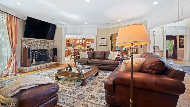 Unparalleled privacy & spectacular NYC views coexist in this newer, meticulously maintained brick & stucco 6400 sf custom center hall Colonial. Experience refined living, w/ incredible craftsmanship throughout, ideally situated in a 1.19 ac. secluded & quiet “Nirvana-like setting ” only 12 miles to NYC. The first level features a magnificent 2 story center Foyer, formal Living & Dining Rms, spacious Great Rm w/ WBFP….each space drenched in light & accented w/ custom millwork throughout. Dreamy eat-in Kitchen w/ custom wood cabinetry, granite counters, top of the line SS appliances incudes a huge, curved center island & separate Breakfast dining area. Easy access to rear stone patio, the perfect place to gather & entertain, both inside & out! 2 home offices, Powder Rm & convenient door to 3 Car Garage. Gracious staircase leads to the 2nd level where you will find the expansive Primary Suite w/ private Sitting area, gas FP, luxurious, spa-like Bath & 2 large WIC’s; 4 additional good-sized Bedrooms, Jack & Jill Bath, full Hall Bath & Laundry complete this Fl. Massive unfinished Basement w/ high ceilings & plumbing in place for a full Bath is perfectly suitable for a variety of purposes including Rec Rm, Media Rm, Gym or Golf Simulator. Magnificent grounds include an in-ground heated saltwater Pool w/ spa & cabana, large, incredulous tiered flowering perennial gardens & landscaping w/ LED lighting, extensive fencing. This stately Sanctuary in the Sky is truly one of a kind!