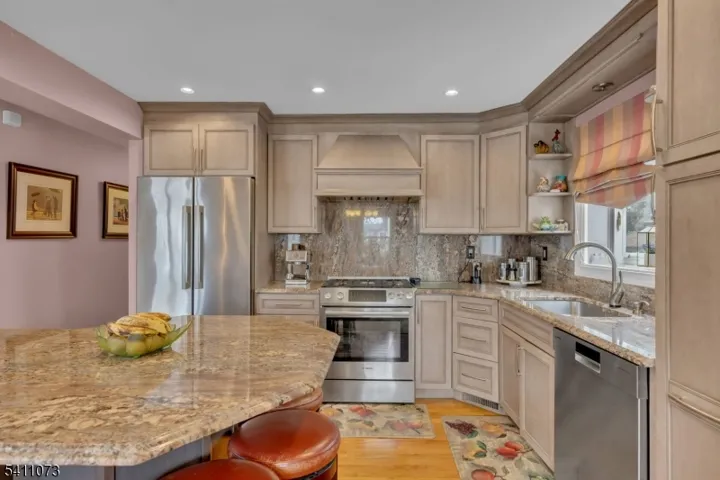 This beautifully maintained, move-in ready home offers a spacious layout & thoughtful updates throughout! Enter into a welcoming living & dining room featuring gleaming hardwood floors, crown molding & a bay window that fills the space with natural light. Both rooms open to the beautifully renovated kitchen, completed in 2014, which features marble countertops that extend seamlessly to the backsplash, custom cabinetry, newer stainless steel appliances & a center island. Beyond the kitchen, an office leads to the family room with access to the yard. The first floor also includes 2 spacious bedrooms and a modern full bathroom with a tub & separate shower. Upstairs, you’ll find 2 additional generously sized bedrooms & a renovated full bath with an oversized walk-in shower. The finished basement offers additional living space & includes a second kitchen, a large rec room with a bar & wood-burning stove, a cedar closet, half bath, laundry room & utility room. Outside, the flat, fully fenced backyard features a large paver patio & storage shed, with pavers extending to the driveway. Additional highlights include a one-car attached garage, two sump pumps, a roof approx. 8 years old, a water heater approx. 8 years old, and furnace/central air systems installed 4 years ago. NOT IN A FLOOD ZONE! Conveniently located near Morris Ave, bus routes to NYC, schools, parks, & major highways including Routes 22, 78, 24, & GSP, as well as nearby shopping & dining options. Don’t miss this one!