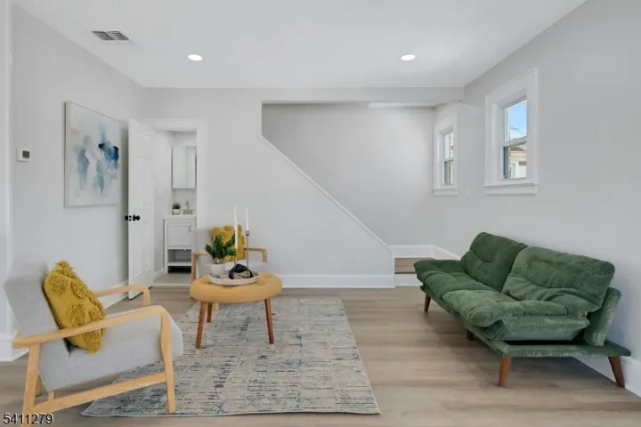 Renovated 3-bedroom, 3-bath home with finished basement, central air, driveway, and garage in Newark’s Upper Vailsburg section. This move-in ready property features a modern open layout with wide-plank flooring, recessed lighting, and abundant natural light. The living and dining areas flow into an updated kitchen with quartz countertops, shaker cabinets, stainless steel appliances, gas range, peninsula seating, and designer tile backsplash. A bright, window-lined front room offers flexible space for a home office, sitting area, or additional lounge. Upstairs includes three well-proportioned bedrooms, while all three bathrooms have been updated with large-format tile, modern vanities, and contemporary finishes. The finished basement with full bath adds valuable bonus space for recreation, work-from-home needs, or extended living. Additional highlights include central air conditioning, updated systems, private driveway, and detached garage. Conveniently located near major highways, shopping, parks, Seton Hall University, and public transportation with access to NYC and Newark Liberty International Airport. A fully renovated Upper Vailsburg home offering modern updates, functional space, and long-term value.