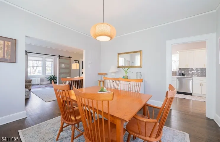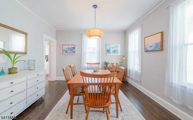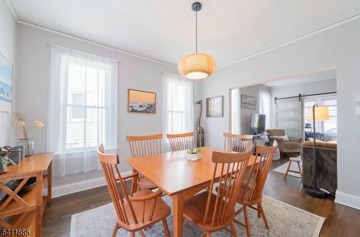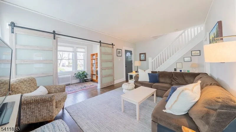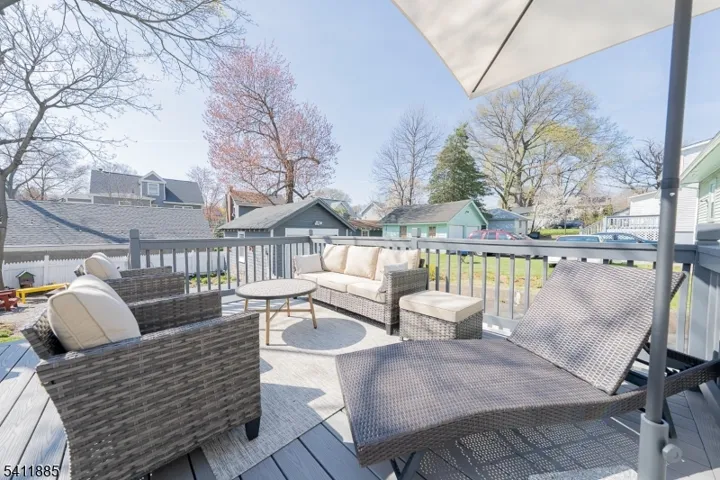Impeccably maintained & completely updated, this picture-perfect Colonial offers a seamless blend of timeless architectural charm with modern comfort. The welcoming Foyer introduces a sunlit, inviting Living & formal Dining Room ensemble, complemented by a versatile Den framed by striking barn doors, ideal as a home office or playroom. The Eat- In Kitchen shines with crisp white shaker cabinetry, gleaming quartz countertops, stainless steel appliances & a peninsula with seating, ideal for both casual dining & effortless hosting. A well-placed Powder Room completes this level. Upstairs, 3 good sized & serene Bedrooms with generous closets offer comfortable living & are serviced by a full Hall Bath. The finished Lower Level provides exceptional additional living space, featuring a spacious Recreation Room, full Bath & abundant storage perfect for guests, or flexible lifestyle needs. Step outside from the Kitchen to an expansive rear composite deck overlooking a fully fenced, private backyard oasis. Enjoy relaxing evenings in the hot tub, surrounded by lush perennial gardens & beautifully landscaped grounds. A detached one-car garage adds convenience & character. Hardwood floors, newer windows and many more improvements. Ideally located just moments from a nearby park and close to local shopping & dining, this home is a true gem! Only 2 blocks to Jitney to Maplewood Train Station offering direct train service to NY Penn.
