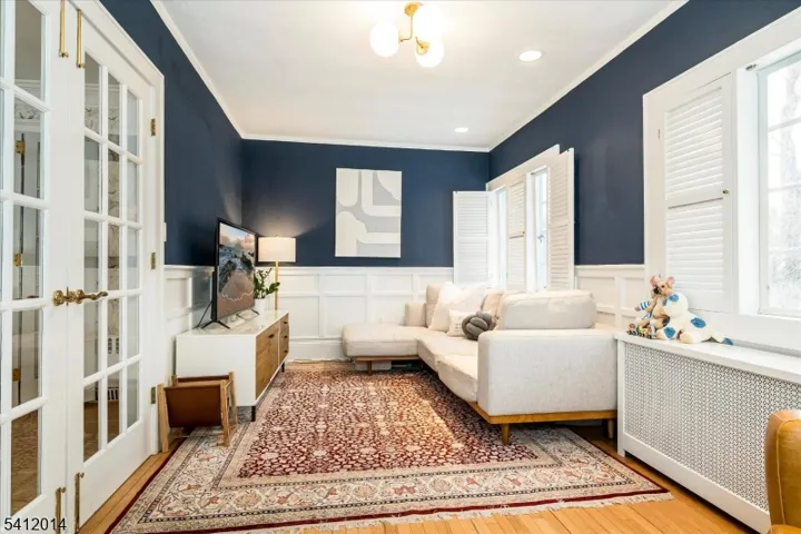 NYC skyline views from every floor on half acre property in prime Montclair location! This 5 bedroom Tudor on one of Montclair’s most desirable stretches delivers storybook curb appeal with modern livability. The main level features a sunlit living room with wood burning fireplace, formal dining room with custom millwork, stunning illuminated cabinetry plus French doors leading to a bluestone patio with gas hookup for grill, and pretty terraced yard, designer office wrapped in windows, adorned with chic wallpaper, and a gracious den. Eat- in kitchen with stainless appliances and plenty of seating, rare first floor bedroom and ensuite bath for flexibility. The second floor showcases a renovated primary suite with gracious custom closet, two additional bedrooms on the second floor with a second full bath and large hall cedar closet.The third floor is a retreat with color drenched bedroom, full bath and storage room. The finished basement adds gym, wine storage, laundry and rec possibilities. Just moments to Upper Montclair village and the NYC midtown direct train, plus beloved local boutiques, coffee shops, bakeries, movie theater,and wonderful variety of restaurants. A truly enchanting Montclair home that blends English cottage charm with timeless sophistication!