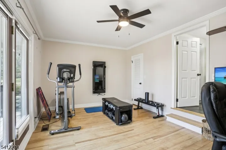 This Puddingstone Heights home offers sophisticated living on an open, wooded lot w/ private grounds. It is a thoughtfully designed home which is ideal for aging in place with modern flexibility. Main floor features an eat-in kitchen which is open to the family room. This cozy den has a focal point of a woodburning fireplace. and also opens to the deck. A formal dining room opens to the very large living room; perfect for large holiday gatherings. The generously sized bedroom/office opens to the spacious deck and is also accessible directly from the foyer. Great for those who work from home. It also features a a large walk-in closet and has private access to the full bathroom equipped with a large stall shower. The back of the house faces east to allow a wash of morning sunshine each morning. Upstairs, three additional bedrooms include a master suite, and a large converted bedroom as a double walk-in closet, and a third additional nice sized bedroom next to the hall full bath. Hardwood in all rooms. All three full bathrooms have been updated from original. Finished basement for extra play/entertaining and tons of storage. Recent 2026 updates: NEW roof & AC. The oversized two car garage is accessed via a breezeway. Future one floor living affords accessibility potential making this a versatile home for today’s discerning buyer. There is plenty of room for expansion on this acre plus property. Highly rated school system. Minutes from Morris Plains NJ Transit.