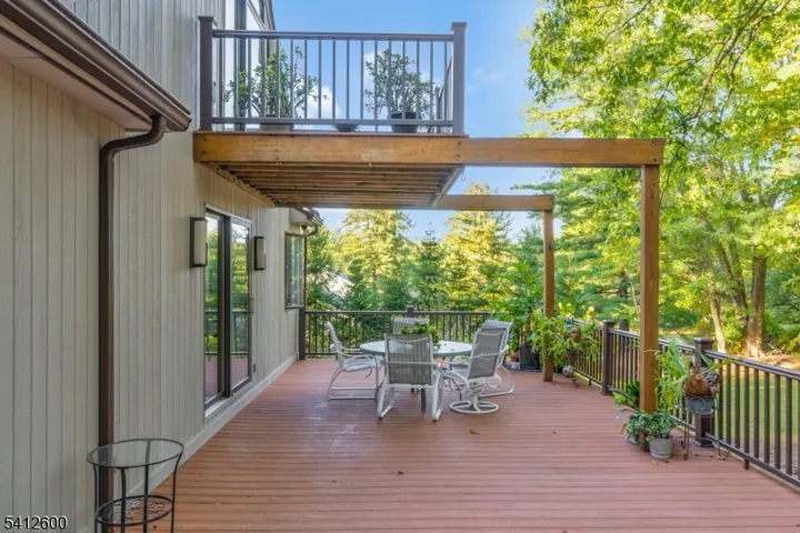 Set on a quiet, wooded lot, 10 Blazier Road offers a rare combination of architectural character, natural light, and flexible living space in Warren Township. This expanded, custom home features a thoughtful layout with generous room sizes, vaulted ceilings, skylights, and walls of windows that bring the outdoors in.The main level includes multiple living areas ideal for both everyday living and entertaining, highlighted by dramatic fireplaces, hardwood floors, and seamless access to expansive decks overlooking the private rear yard. The kitchen connects naturally to a bright breakfast area and a striking sunroom with curved glass walls, creating a year-round space for dining or relaxing while enjoying the surrounding landscape.A first-floor bedroom wing provides flexibility for guests, work-from-home needs, and everyday living, while the second floor offers additional bedrooms, including a spacious primary suite with ensuite bath and balcony. The open-to-below design enhances light and flow between levels.Outdoor living is a standout feature, with multiple decks and terraces designed for entertaining or quiet retreat. A large basement and garage add storage and future potential.Located in one of Warren’s most desirable residential areas, this home offers privacy, scale, and architectural distinction ready to be enjoyed as-is or personalized over time.