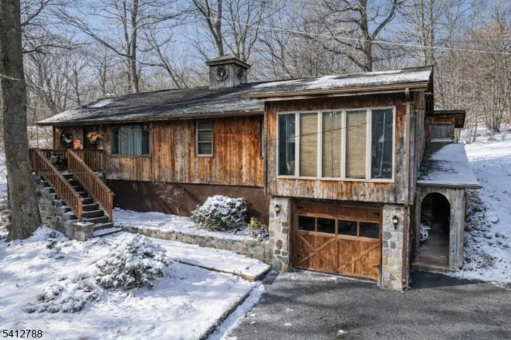 Gorgeous, show-stopping lake home with a cozy, inviting feel and potential for long- or short-term rental, vacation, or Airbnb use. This 3-bedroom, 1-bath ranch is nestled on a spacious, tree-lined lot near the shores of Lake Hopatcong, NJ?s largest lake with 39 miles of shoreline. Vaulted tongue-and-groove wood ceilings create a warm, lodge-like atmosphere, while the living room features natural log accents and a stone-surround wood-burning stove. The bright kitchen boasts soaring ceilings, skylights, and a butcher block island, with a dining area that opens to the backyard through sliding doors. The sun-filled primary bedroom includes vaulted ceilings, skylights, large windows, and a loft for storage, and the bath offers tile, a walk-in shower, and a relaxing sunken tub. Outside, enjoy a wrap-around porch, lush gardens in the backyard, and an amenity-filled outdoor space featuring a brick BBQ grill and a custom walkway leading to a firepit area. A small waterfall is visible from the backyard when it rains on the slope further away from the property. Additional features include a flagstone patio with outdoor fireplace, private wooded seating area, expansive yard, storage shed, and one-car garage. Served by a private well with water naturally filtered through the quarry, offering refreshing, high-quality drinking water. Just minutes from lake access, boating, and dining, this rare Lake Hopatcong retreat combines charm, comfort, and versatility.