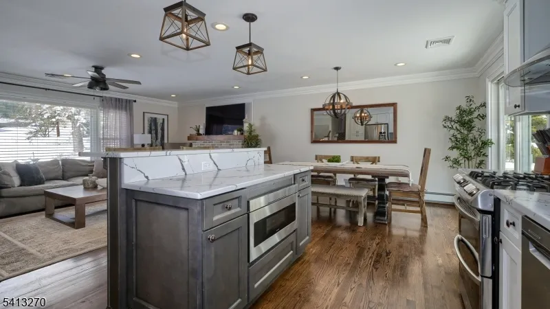 Stunning Colonial Split blending timeless elegance with modern design throughout. This 4-bedroom, 2.1-bath home offers an open-concept layout and sun-filled interior on over a half-acre of beautifully landscaped property. The ground level welcomes you with a spacious foyer leading to a generous family room with sliders to the patio-beautifully designed backyard retreat with multiple outdoor living areas, including a firepit, a pergola-covered sitting area, and a fenced yard. Enjoy summer at its best with an above ground pool surrounded by Trex decking. This level also includes a powder room, laundry room, and access to the 2-car garage. The show-stopping main floor features a white custom gourmet kitchen with quartz countertops, center island for casual dining, and stainless-steel appliances. A separate dining area with sliders to the deck flows seamlessly to the backyard and pool. The living room is anchored by a beautiful stone gas fireplace. Upstairs, the primary suite offers a sleek, modern bath, while three additional bedrooms share a stylish main bath. Add’l features include, hardwood floors, recessed lighting and high-end elements throughout plus a newer high-efficiency boiler. Ideally located on a picturesque, tree-lined street near top-rated Fallon Elementary School, NYC transit, shopping, and major highways. Move-in ready and built for both entertaining and everyday living.