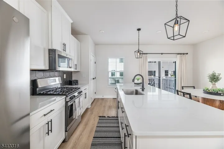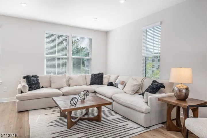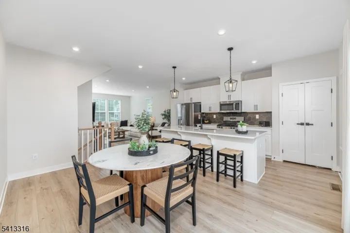 Built in 2024, loaded with premium upgrades, this stunning three-story end-unit townhome blends modern luxury, comfort, and convenience. From the moment you enter, you’re welcomed by wide-plank wood flooring, neutral designer paint, soaring ceilings, recessed lighting, and custom window treatments that create a bright, sophisticated ambiance throughout. The 1st level offers a gracious foyer, convenient powder room, and a spacious open family room with sliding doors leading to a patio perfect for relaxing. Upstairs, the sun-filled main living level showcases an impressive custom kitchen designed to be the heart of the home. Crisp white cabinetry, a grand center island with built-in breakfast bar, and elegant pendant lighting make the space both stylish and functional. The kitchen flows seamlessly into the dining and living areas, creating an expansive open-concept layout ideal for gatherings. Large windows flood the home with natural light, while an elevated wooden deck extends your entertaining space outdoors. The 3rd floor features three generously sized bedrooms and two full baths. The luxurious primary suite includes a tray ceiling with recessed lighting, a spacious walk-in closet, and a private ensuite bath with dual vanity. A well-appointed hall bath with tub and shower serves the additional bedrooms. Immaculate and move-in ready, this exceptional home is just moments from the center of Hackettstown, with its charming shops, restaurants, and NJ Transit service to NYC.