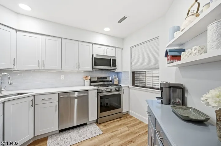 Lovingly maintained 2 BR townhome with NO steps from walkway to frt dr opening to a welcoming spacious foyer, hallway and on into the open flr plan Kit/DR/LR! Enjoy the fabulous living area with views to a private patio overlooking trees and level lawn area. The well appointed open kit w SS appliances, quartz ctrs and newer cabinets allows for a eating area plus the adjacent formal DR. The entire main level offers new luxury vinyl plank flooring which continues up into the 2nd level hallway and BR’s.for a seamless flow throughout! The updated pdr rm, dble coat closet and pantry complete the main level. 2nd level offers a primary with lrg WIC and built ins! The inviting main bth offers a 48 in vanity, tiled flr and wainscotting along w tub/shr combo. A secondary BR w dbl closet and built ins, laundry/utility rm plus a lrg linen closet complete the bedroom level. Lrg attic w pull down stairs offers great storage! Bald Eagle Village offers the convenience of close proximity to town center amenities and main road commute nestled into the foothills of West Milford. Nature enthusiasts will enjoy the walking paths and hiking trails. Bsktball and tennis for the sports enthusiast and a clubhouse for social events. The surrounding area offers everything from an array of eateries, modern grocery stores along with all the standard amenities close to home. Quaint villages, markets, orchards, wineries, breweries, golf, Mtn Creek, Minerals and Crystal Springs, State Prks, NYC, airports.