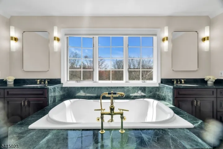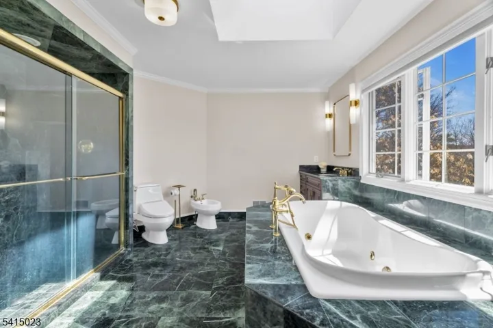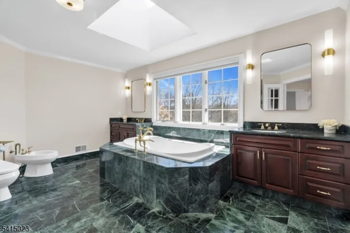 Welcome to this impressive custom designed brick colonial set on a quiet cul-de-sac, offering refined living, exceptional space, and timeless appeal. A dramatic two-story foyer welcomes you into an elegant interior featuring formal living and dining rooms designed for both everyday comfort and entertaining. The beautifully appointed eat-in kitchen showcases crisp white cabinetry, quartz countertops, and a seamless flow into the expansive family room, highlighted by vaulted ceilings and a fireplace that anchors the space with warmth and sophistication.The first level also offers a versatile den or bedroom along with two powder rooms, providing flexibility for guests or extended living. Upstairs, the primary suite serves as a private retreat, complete with two walk-in closets, a spacious bath, and a separate area ideal for a home office, sitting room, or private escape with its own balcony. Three additional bedrooms and two full baths complete the upper level. The finished basement expands the living space, perfect for recreation, a home gym, or media room. Set on a large, flat property, the outdoor space offers endless potential for entertaining or relaxation. One-of-a-kind and conveniently located close to highways, dining, shopping and more!