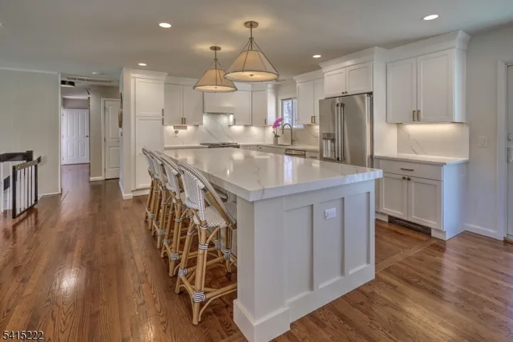 Located in an established Chester neighborhood with mature trees and spacious lots, this home offers a comfortable layout with thoughtfully updated living spaces. The renovated kitchen (2025) features white cabinetry, quartz countertops, a sleek full quartz backsplash, a large center island with seating, and a built-in beverage refrigerator. The kitchen opens to the family room with a gas fireplace and large windows that bring in natural light and views of the property. An eating area just off the kitchen includes a built-in bench with storage and offers a comfortable spot for dining, while a sliding door leads directly to the deck giving easy access to outdoor living. The deck overlooks the generous back yard, creating space to relax and enjoy the setting.This main level also includes the primary suite with a primary bath beautifully renovated in 2025, along with two additional bedrooms and a hall bath. The ground level provides additional living space with a living room featuring a second fireplace, along with a fourth bedroom and full bath.Additional recent improvements include refinished wood floors, a new roof (2023), and a new septic system (2023).Chester is known for its strong sense of community, highly regarded schools including an International Baccalaureate (IB) Diploma high school, a charming downtown, and access to numerous parks and preserved open space.