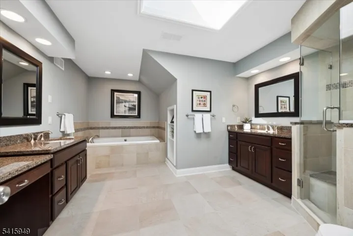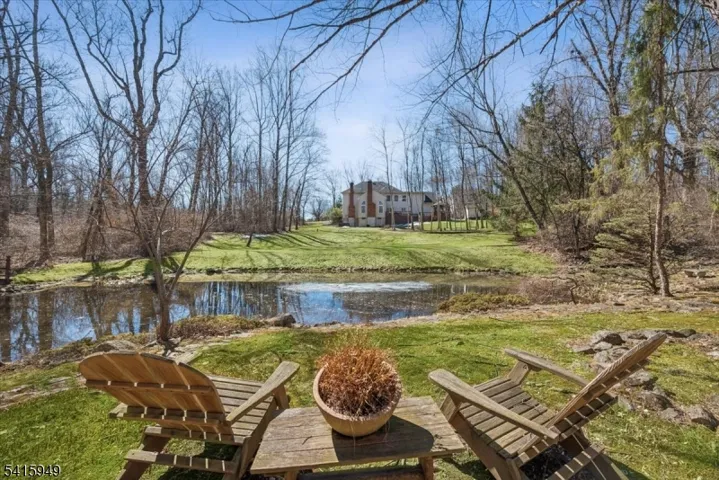 Tucked at the end of a quiet cul-de-sac in one of Chester Township’s most desirable neighborhoods, this exceptional Colonial is set on 5+ private acres, offering a combination of elegance, privacy, and natural beauty. Rolling manicured lawns lead to a tranquil brook and a picturesque landscaped pond with a charming waterfall, creating a peaceful outdoor setting that feels like a private retreat. An expansive deck with an integrated gazebo provides the perfect space for outdoor dining, entertaining, or simply enjoying the serene surroundings.A welcoming 2-story foyer opens to a spacious formal living room and elegant dining room. The eat-in kitchen features granite countertops, a center island, and a bright breakfast area overlooking the scenic rear grounds w/direct access to the deck + gazebo. The adjoining family room showcases soaring cathedral ceilings and a wood-burning fireplace, creating a warm and inviting gathering space. A private office with a second fireplace, powder room, and laundry room complete the main level. Upstairs, the primary suite offers peaceful views of the wooded rear property, a spa-like bath + a spacious WIC. Additional beds provide generous accommodations. The walk-out basement offers flexible space for recreation, fitness, or entertaining. This remarkable property presents a unique opportunity to enjoy exceptional comfort and privacy while remaining just minutes from Chester’s charming downtown, boutique shopping, dining, and top-rated schools.