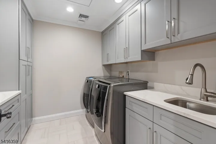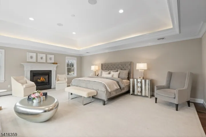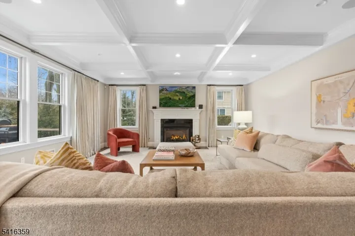 Step into a world of refined living where stunning architectural detail meets iconic style. Upon entering, a dramatic sweeping staircase and striking chandelier set the tone for the home’s distinctive design. The main level offers spacious living and entertaining areas, including a family room with a fireplace, coffered ceilings, and a custom built-in wet bar with wine fridge. Extensive custom millwork further enhances the sophisticated character throughout. The chef’s kitchen features custom cabinetry, quartz countertops, marble backsplash, high-end appliances, and a large center island. Enjoy meals in the sunlit breakfast area framed by windows overlooking the backyard. Upstairs, the primary suite offers a private retreat with tray ceiling, cove lighting, fireplace, spa-like bath with freestanding soaking tub, and an expansive custom walk-in closet. Additional highlights include four generously sized bedrooms with well-appointed bathrooms and a conveniently located second-floor laundry. The finished walk-out lower level expands the living space with a dedicated movie theater complete with surround sound, along with a recreation area ideal for a gym, billiards room, or play space with walk-out access to the backyard. Additional features include a convenient mudroom off the three-car garage, multi-zone heating and cooling, and a spacious backyard offering endless potential for outdoor living and entertaining.
