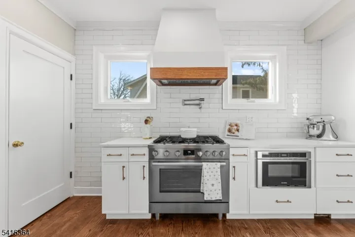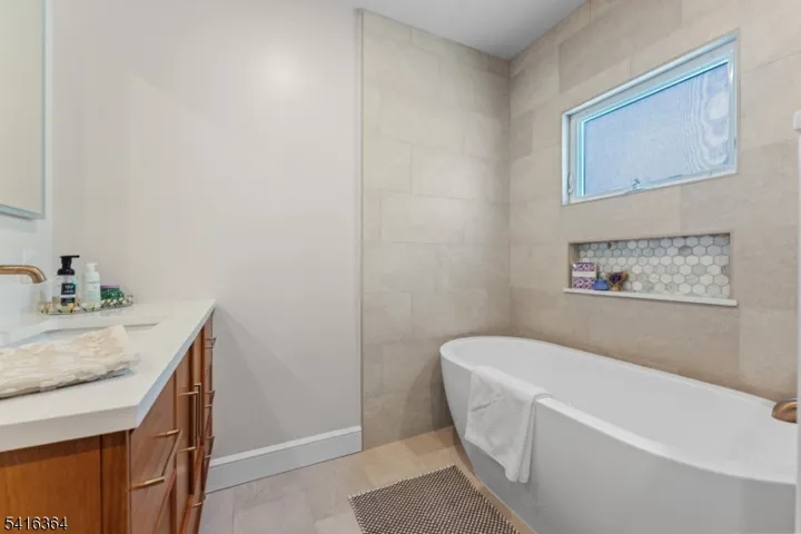 Beautifully updated home set on an oversized lot with one of the largest backyards in Nutley. You will fall in love with the curb appeal and front porch even before you enter this one! The first floor features a bright, open style layout that flows seamlessly between the living and dining areas. The living room is filled with natural light from large windows, while the dining room offers charming corner nooks perfect for decor and added character. The brand new all white kitchen is both stylish and functional, serving as the centerpiece of the main level. A complete Bosch Suite of appliances is ready for your mornings and evenings of cooking. There is a large pantry area and mudroom area by back door entrance. Upstairs, you will find three comfortable bedrooms and a chic bathroom that creates a spa like feel between the stand alone tub and custom shower stall. Convenient second floor laundry in hallway. A walk-up unfinished attic offers tremendous potential for future expansion. Outdoor living is exceptional with paver patio and expansive backyard that is ideal for entertaining. Garage is currently set up as a home gym. Located in a wonderful neighborhood within the Radcliffe school district and close to NYC transportation, ON3 campus. Home offers the perfect combination of charm and space!