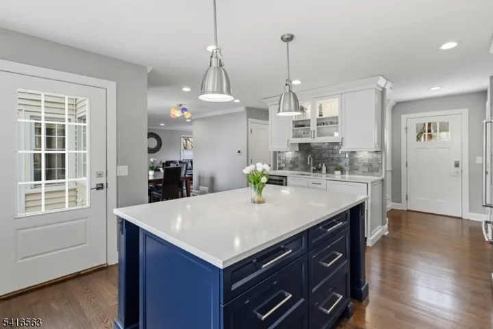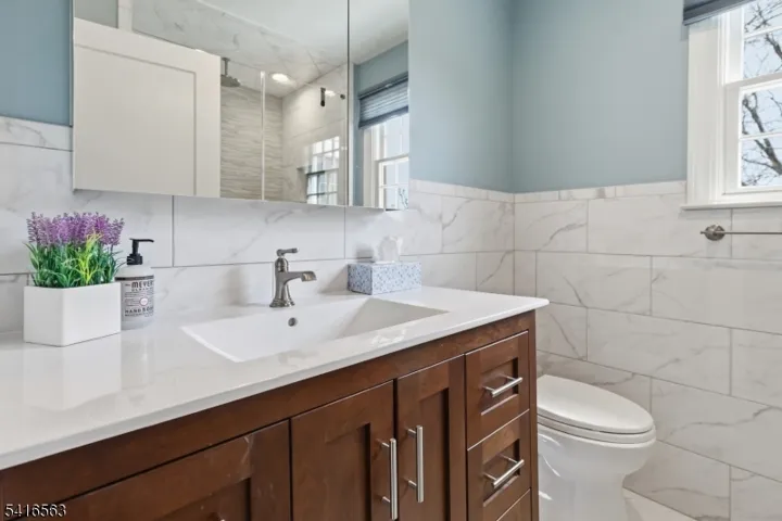 Mint condition & perfectly maintained Glenwood Colonial, close to train, shops & 2 blocks to Millburn High. Beautiful addition designed by Tom Baio in 2018, includes gourmet white eat-in kitchen w/stainless appliances, 36″ Miele gas range w/6 burners, microwave & Miele Combi-steam wall oven w/Miele Warming Drawer, & DW. KitchenAid ref/freezer w/ice-water dispenser, 2 ref drawers, Marvel beverage cooler & many custom Heard Woodworking cabinet features. Main sink w/instant hot & Insinkertor disposal. The new covered side door entry is surrounded by stone & has a combo Emtek lock, entry to a mud room w/bench, 8 coat hooks, many cabinets & shelves for shoes, drawers, plus off of 1 car oversized attached garage. Open concept LR/DR + sun room or office. 4BR’s w/hardwood floors & 2 new baths w/heated floors upstairs, recessed Lutron lighting w/remote controls, custom doors, door handles & many new windows. Fab step-down media room w/high ceiling in the dry basement, w/possible office or gaming room, wine closet, laundry & utility room, a full bath w/stall shower. Double wide driveway w/Belgian block curbing offers parking for 4 cars. The yard has a patio + doors from the both the kitchen & the den lead outside. Tastefully painted in neutral colors, Timberline roof 2018, maintenance free vinyl siding & more! Ducts just cleaned, Gas FP – chimney just serviced & no known issues but chimney, flu, fireplace and all parts are as is..
