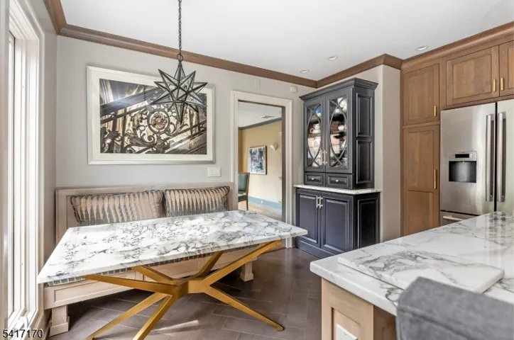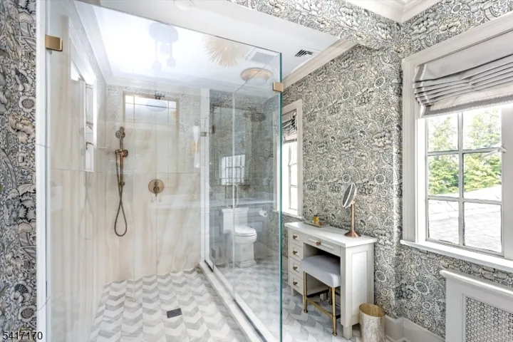 Perfectly positioned on a corner lot on premier Douglas Rd, this 5 BR, 3.1 bath home blends classic charm with magazine-worthy renovations and exceptional indoor/outdoor living. The stunning renovated kitchen features high-end cabinetry, a large center island, marble backsplash and countertops, and a separate seating area framed by an oversized window that fills the space with natural light. Luxuriously renovated baths showcase beautiful finishes and thoughtful design throughout. The spacious living room is ideal for entertaining and offers access to the sunroom with bluestone floor. Bedrooms are well-scaled and light-filled, including a show-stopping primary suite with a custom walk-in closet with abundant shelving and storage, and a beautifully appointed bath with double custom quartz vanity, large porcelain shower and marble floors. Enjoy multiple inviting spaces to relax and unwind, including the welcoming front porch, second-floor balcony, and the private gravel patio tucked behind the garage that feels like a secret garden. The attached garage connects to the home via a convenient breezeway perfect for bringing in groceries on rainy days. A finished basement and central air are added conveniences. Professionally landscaped grounds w/exterior accent lighting enhance the curb appeal. Just 2 blocks from highly regarded Glen Ridge public schools, a nearby park, and NYC transportation from GR train station, this special home offers both beauty and unbeatable convenience.
