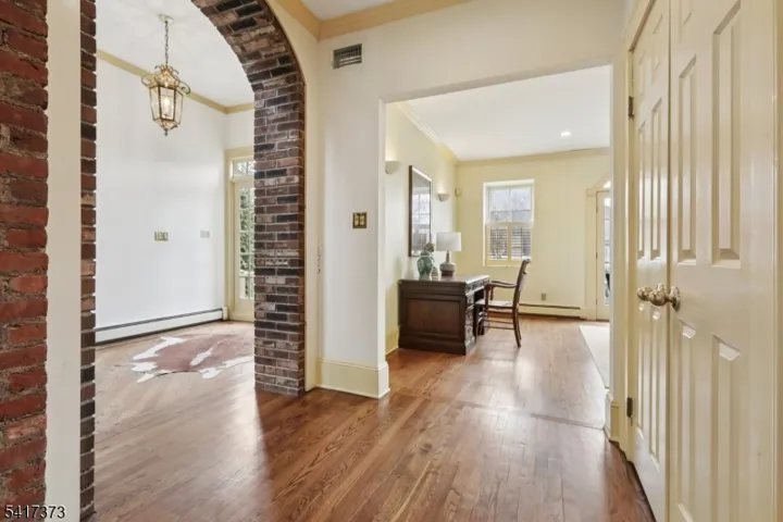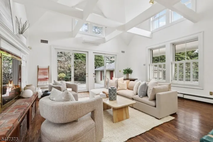 Rare chance to own a piece of Short Hills history. One of the earliest Short Hills post offices, expanded to over 3,100 sq ft with three bedrooms and two and a half bathrooms. This distinctive side-hall Colonial features hardwood floors, high ceilings, dental molding, plantation shutters, and a restored front stone archway with French doors welcoming abundant natural light. Formal living and dining rooms connect to an expansive 700+ sq ft kitchen and family room with cathedral-beamed ceiling, wood-burning fireplace, oversized windows, and French doors opening to a private paver patio. Second-floor primary suite with multiple closets and en-suite bath. Third floor includes two bedrooms and a hall bath. Covered breezeway to detached 2-car garage. Unique opportunity to update and customize this historic property. Includes 3D walkthrough, video tour, and floor plans. Located approx. 350 ft to the Short Hills train station on NJ Transit’s Midtown Direct line with service to Penn Station.